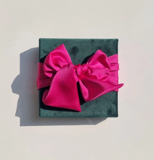 Scopri l'eleganza della scatola in **velluto verde**, perfetta per celebrare ogni occasione speciale. All'interno, troverai deliziosi **confetti con mandorla** e **cioccolato aromatizzato gluten free**, insieme a raffinate **rose cristallizzate**. Ogni boccone è un'esperienza di gusto unica, arricchita da croccanti **cereali al cioccolato al latte**. Il tutto è splendidamente avvolto in una fusciacca fucsia in **pura seta**, che aggiunge un tocco di lusso e raffinatezza. Questa confezione non è solo un regalo, ma un'esperienza sensoriale che lascia un ricordo durevole. Perfetta per chi desidera il massimo della qualità e dello stile. Misura scatola cm 15x15