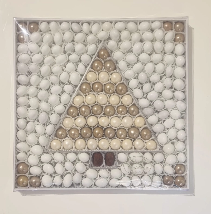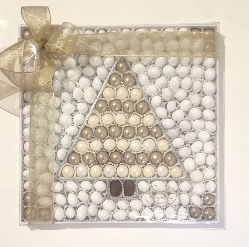 L'Albero di Natale avorio e oro è una raffinata confezione regalo che incarna l'eleganza delle festività. All'interno di una scatola dalle dimensioni di 30x30 cm, troverete 1,270 kg di squisiti **confetti con mandorla e cioccolato**. Questi confetti sono disponibili in deliziosi gusti come crema e frutta, tutti rigorosamente **gluten free**. Inoltre, la varietà di cereali avorio e oro con cioccolato al latte aggiunge un tocco di classe. Perfetti per celebrare momenti speciali, questi confetti rappresentano un regalo indimenticabile, perfettamente in linea con la tradizione natalizia. Rendi unici i tuoi festeggiamenti con questa esclusiva proposta.