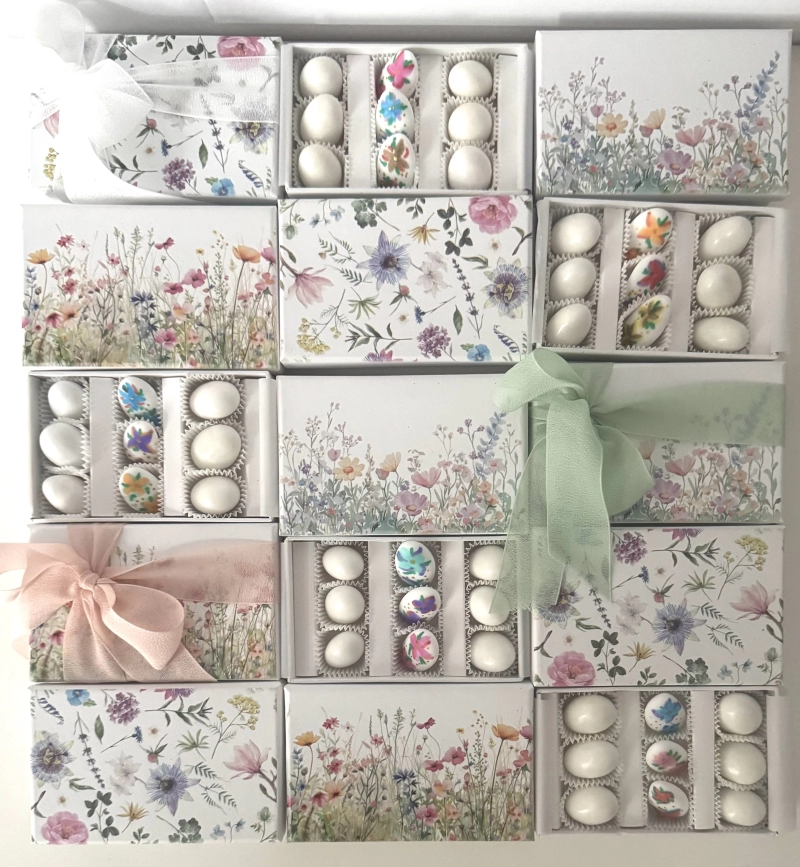 Scatole floreali con confetti dipinti a mano