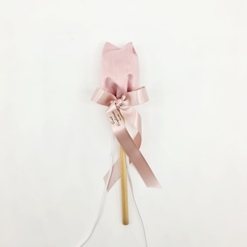 Sacchetto a tulipano in shantung di seta con matita nei toni del rosa cipria