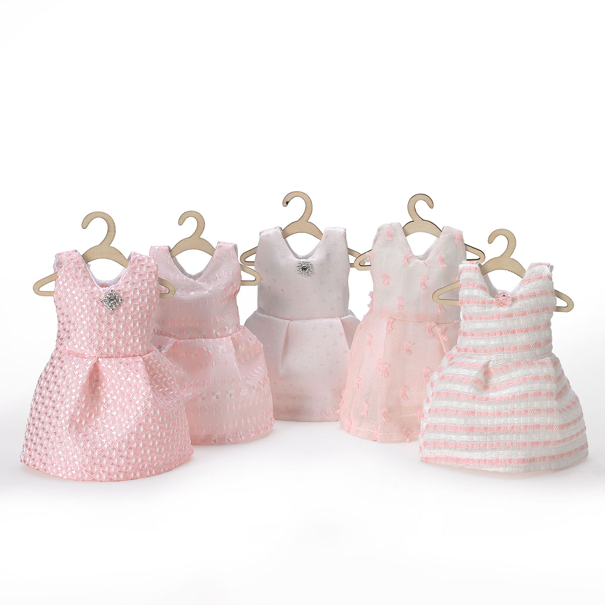Collezione di 5 abitini assortiti, come da foto. Spensieratezza e leggerezza intonano sinfonie di rosa: la collezione Total Girl, tra fiocchetti, pois e ricami, prende posto con estetica vivacità e innovazione, ai nostri più speciali eventi.