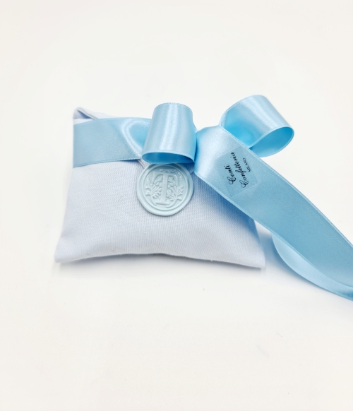 Busta origami in toile de joux azzurro con sigillo in ceralacca