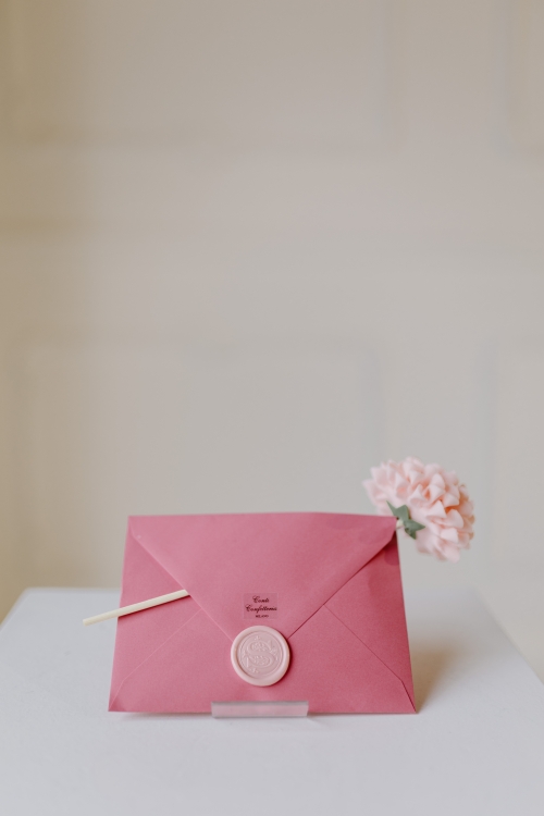 La busta in carta di colore fucsia con sigillo in ceralacca personalizzato è l'ideale per aggiungere un tocco di eleganza e raffinatezza ai tuoi eventi speciali. Completa con un fiore in tessuto e 7 confetti di mandorla di Avola,(gluten free) questa busta dal design raffinato e misura di cm 16x11 sarà sicuramente apprezzata dai tuoi ospiti. Rendi unico ogni momento con questa splendida e curata busta di Conti Confetteria.